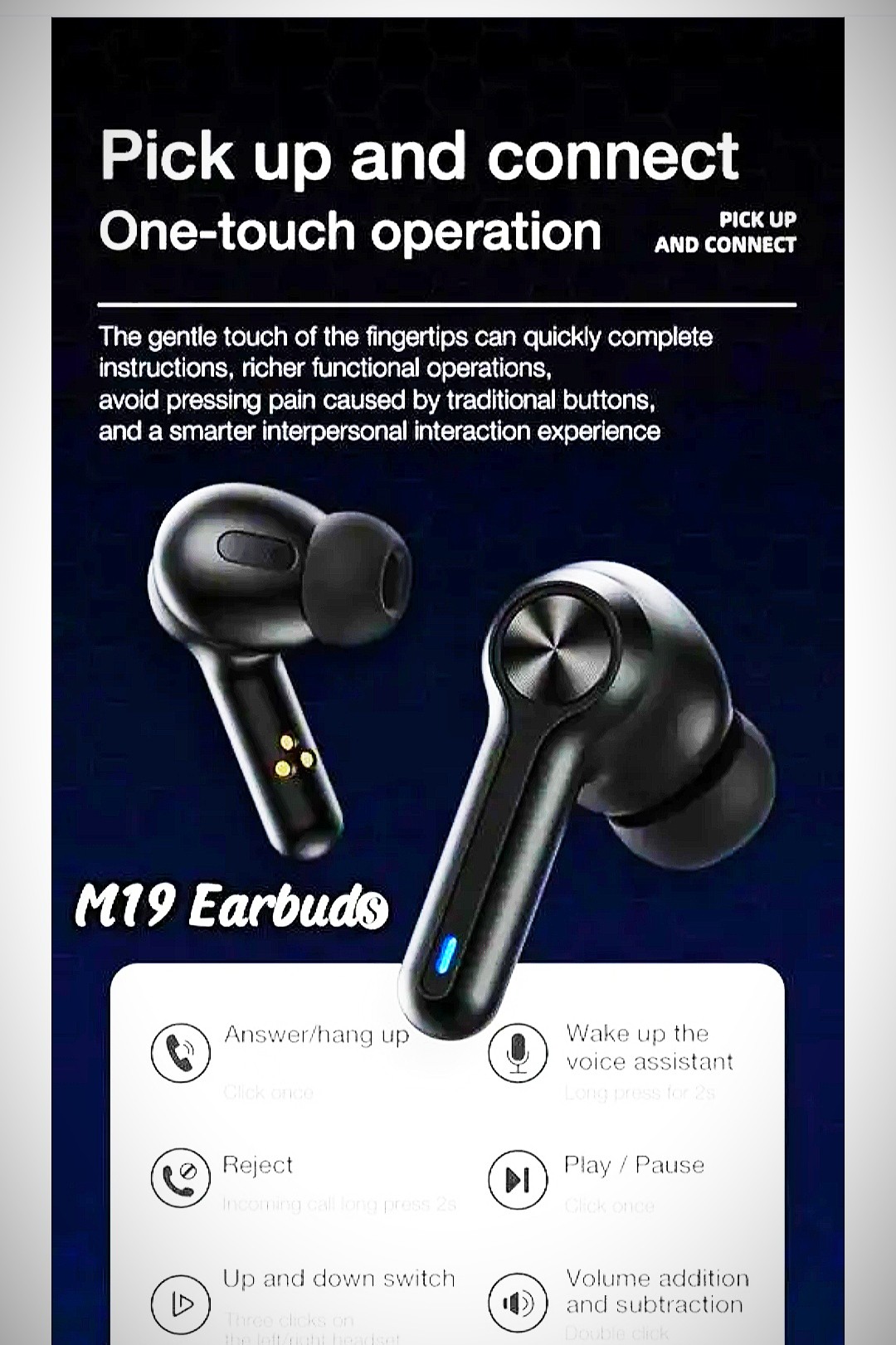Name: M 19 TWS Bluetooth 5.0 Wireless In Ear Earbuds Touch Waterproof LED Digital Display Bluetooth Headset (Black, True Wireless)